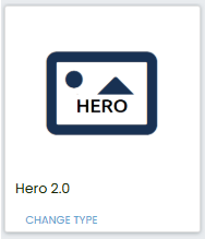 When selected, the interface clearly identifies the component type as “Hero 2.0” and displays an icon representing a hero layout. Users can click “CHANGE TYPE” to switch to a different visual format if required.