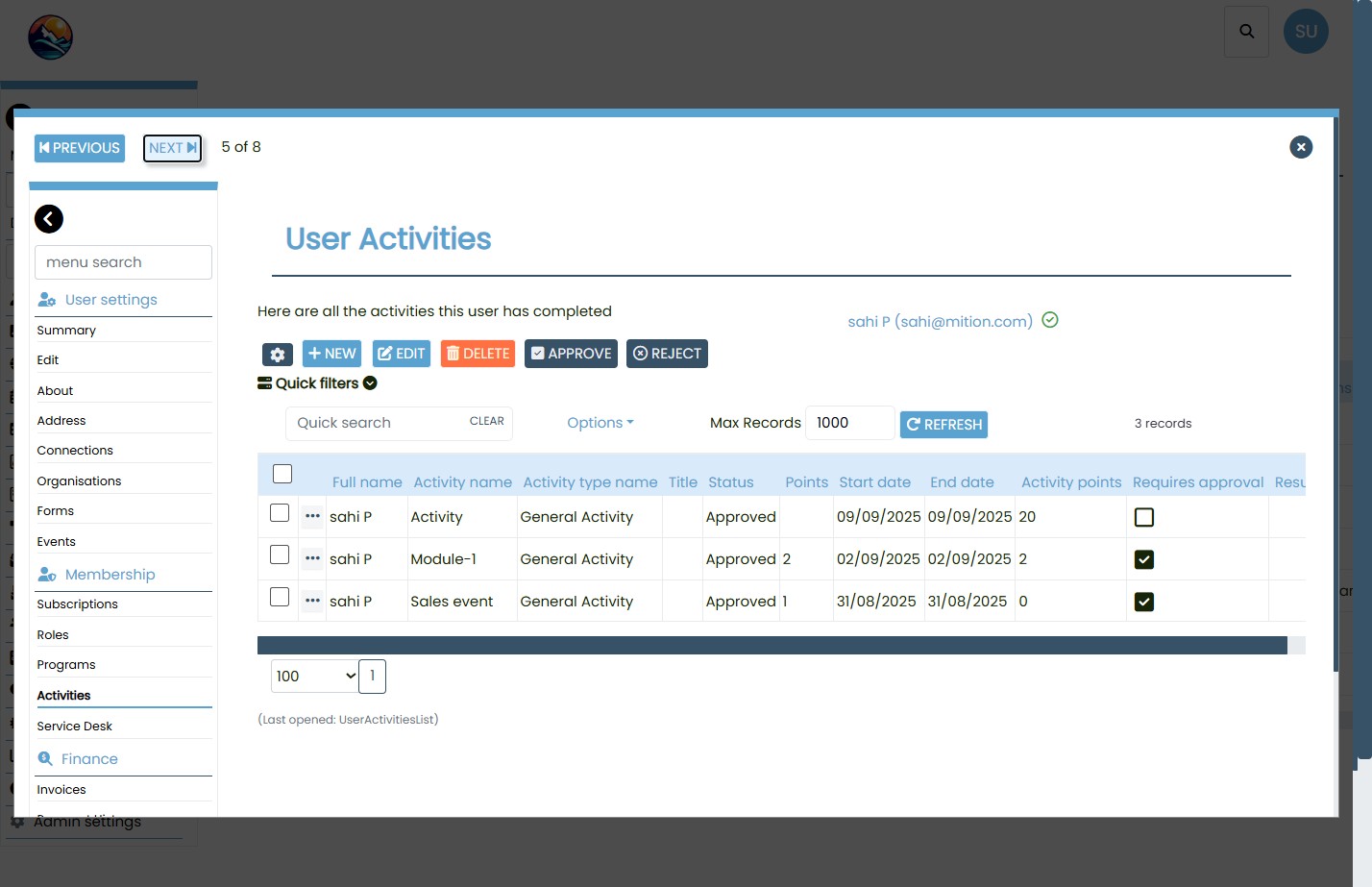 When multiple users are selected in Member Search and the View option is used, the administrator can open a specific screen for the first user. As they click Next to move through the selected users, the system automatically displays the same screen for each user.