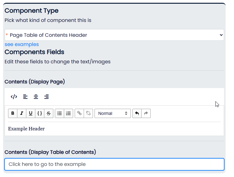 The Page Table of Contents Header component adds a simple, descriptive label to your page, which automatically flows through to the Table of Contents component using anchor links.