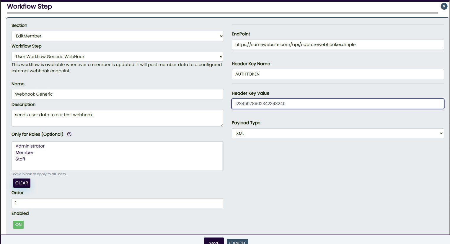 The User Workflow Generic WebHook workflow allows Mition to send user data to an external endpoint whenever a user/member workflow is triggered.