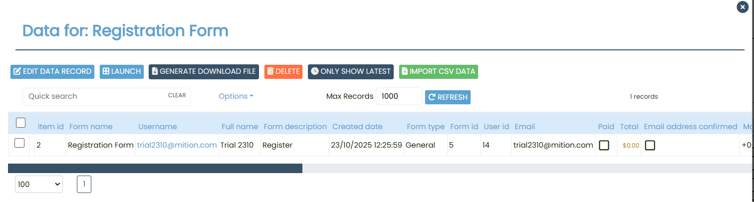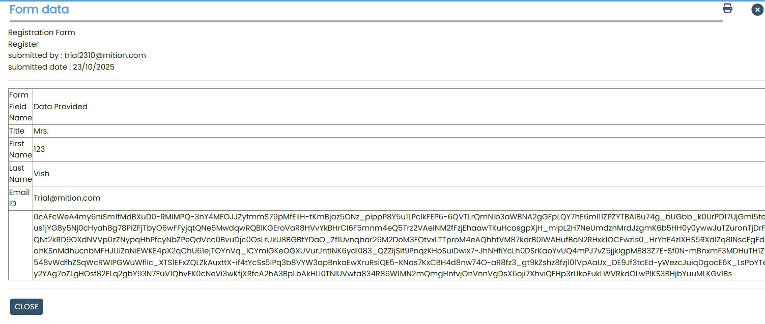 Administrators can later review these submissions by navigating to Form > Select the form > View Data.