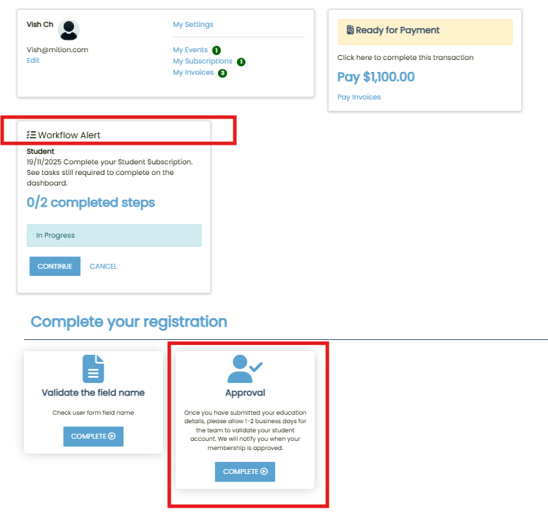 Whether you're managing memberships, supplier registrations, or compliance checks, Mition’s flexible workflow engine ensures that user data is collected, reviewed, and approved efficiently. For best results, test each step thoroughly before going live, and use the included images to support training or internal documentation.